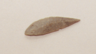 ca 2500 B.C.E. 7 pc. The earliest arrowheads were probably like this one made of chipped hard stone. Careful examination of the edges shows the fine craftsmanship to produce the sharp edges with the crude tools of the times. A stone was used to chip away at the edges in a very careful manner so as not to brake or damage the arrowhead. A fine example of early craftsmanship!